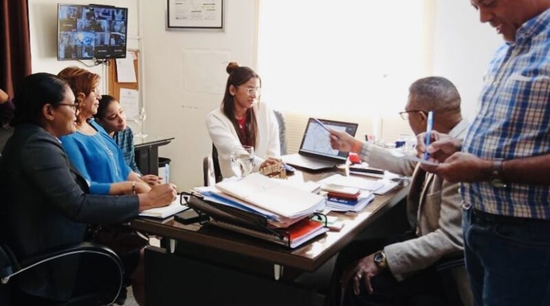 El director Santos Martínez Sánchez se reunió en su despacho con la ingeniera Miguelina Facundo y parte de su equipo operativo para organizar la ruta del transporte público que beneficiará a miles de estudiantes del Distrito 15-01.