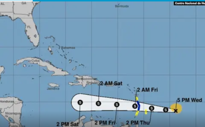 El organismo predictor del tiempo aseguró que la tormenta está a 1000 km al este de la Isla de Barlovento, en las Antillas Menores, con movimientos al oeste de 26 km/h.