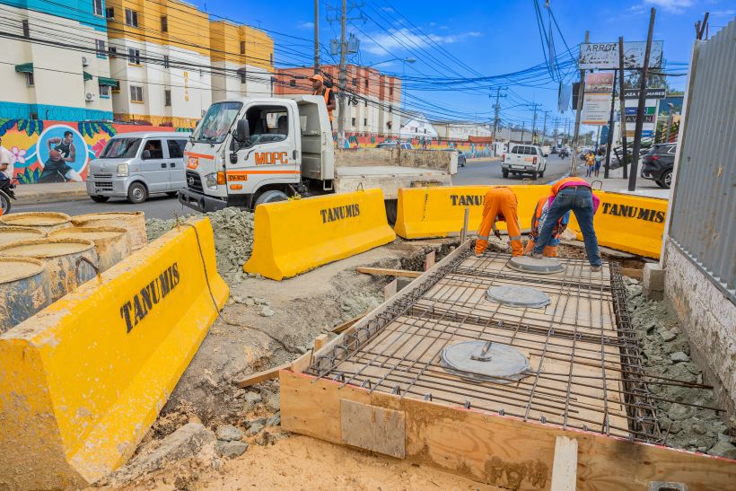 Este martes, dos ingenieras del MOPC estaban al frente de los trabajos que se llevan a cabo, con una brigada de hombres que trabajaban en el envarillado y vaciado de concreto.