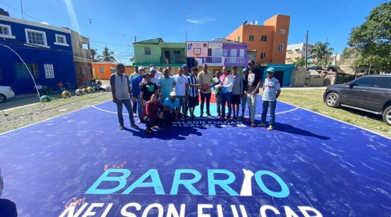 2. *Santo Domingo Norte, R.D.* Pinturas relucientes y óptimas condiciones matizan el aspecto de la cancha para actividades recreativas y deportivas en el sector El Majagual de Sabana Perdida, a través de un hermoseamiento que produjo el programa comunitario “En el Barrio con Fulcar”, presidido por el profesor Nelson Fulcar, activista social y dirigente político.