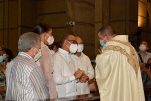 Deligne Ascencion recibe la bendicion del sacerdote Rijo en la Basilica de Higuey