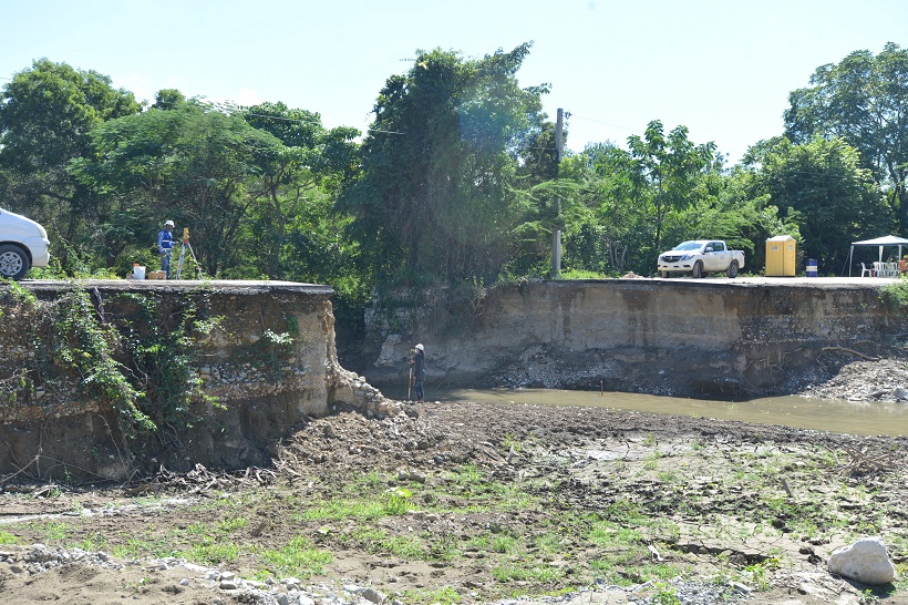 De su lado, José Guillermo Ascención, representante de la empresa que tiene a cargo la ejecución de la obra, dijo que en estos momentos están procediendo a la canalización del río, con una estructura metálica y muros de gaviones, garantizando que el nuevo puente será de gran calidad, tal como lo ha pedido el MOPC.
