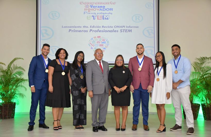 Santo Domingo, D.N.- El director general de la Oficina Nacional de la Propiedad Industrial ONAPI, Dr. Salvador Ramos, a través de la Academia Nacional de la Propiedad Intelectual ANPI, presentó la cuarta Edición de la Revista ONAPI Informa Primeros Profesionales de la Ciencia, Tecnología, Ingeniería y Matemática (STEM), con el propósito de resaltar la importancia de las carreras tecnológicas en el fomento a la innovación.